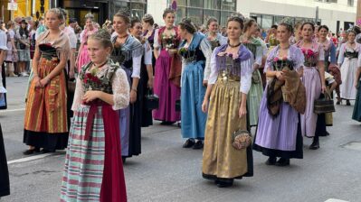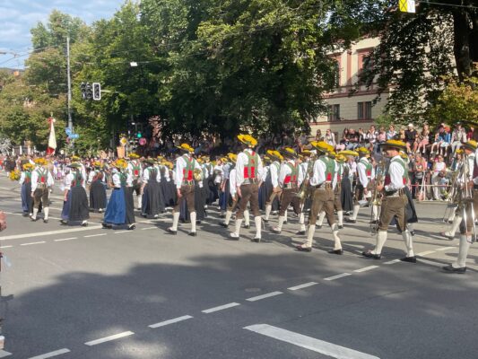 Ein weltweit beachteter und überaus farbenfroher Trachten- und Schützen-Festzug bewegte sich am ersten Wiesn-Sonntag durch die Münchner Innenstadt auf die Theresienwiese zu.