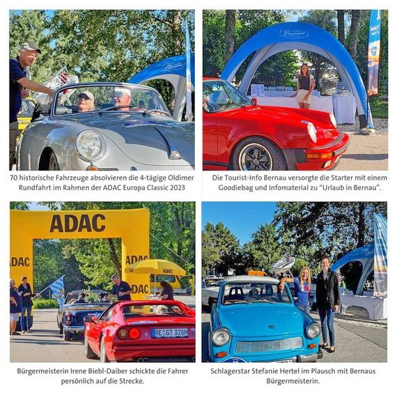 Die ADAC Europa Classic 2023 ist in diesem Jahr mit rund 70 historischen Fahrzeugen am Chiemsee zu Gast. An drei Tagen – von Montag 04. bis Mittwoch 06. September – startet das rollende Automobilmuseum vom Chiemseepark in Bernau-Felden auf die jeweiligen Tagesetappen.