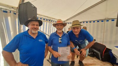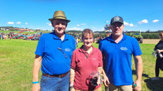 – über den ersten Platz in der Meistpreiswertung freuen sich die Bulldogfreunde aus Amerang, in der Mitte Vorstand Engelbert Anzinger mit Christoph Niedermaier 1.VS (re) und Hans Gruber 2.VS (li) vom Pittenharter Oldtimerverein