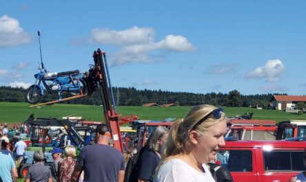 Für die Veranstalter ist neben der ganzen Unterhaltung auch sehr wichtig, dass alle Besucher heil und unbeschadet wieder nach Hause kommen. In einer kurzen Andacht leitete Diakon Georg Oberloher die angesagte Fahrzeugsegnung ein und gedachte auch dem kürzlich verstorbenen Gründungsmitglied Engelbert Buchner. Gerade Buchner war es vor seinem Tod ein sehr großes Bedürfnis, dass auch sein Oldtimerbulldog zur Segnung beim Oldtimertreffen steht, dieser Wunsch wurde ihm auch mit Hilfe seiner Familie und des Vereins erfüllt.