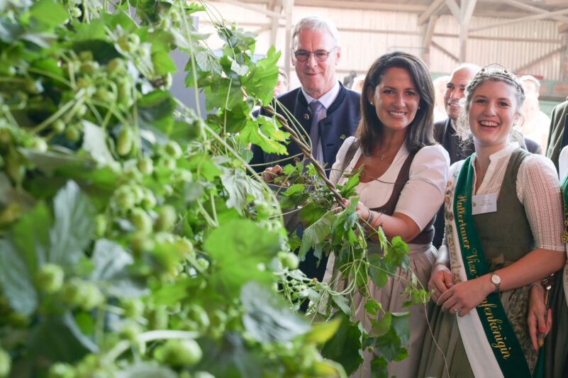 Aufatmen bei den bayerischen Hopfenbauern: Sie können dieses Jahr nach zwei schlechten Hopfenjahren mit einer aussichtsreichen Ernte rechnen. Ersten Schätzungen zufolge ergibt sich für das Bundesgebiet eine Gesamterntemenge von ca. 49.000 Tonnen. Das sind rund 19 Prozent mehr als bei der Ernte im vergangenen Jahr. „Das Anbaujahr 2024 war für Bayerns Landwirte mehr als herausfordernd. Umso mehr freut es mich, dass unsere Hopfenbauern in diesem Jahr eine gute Ernte erwarten können. Nach zuletzt zwei mageren Hopfenjahren können die Betriebe wieder aufatmen. Bayern ist weit über die Landesgrenzen hinweg bekannt für seine Biere und für die einmaligen Anbaugebiete des bayerischen Hopfens. Die Brauereien werden aus dem vollen schöpfen können“, sagte Landwirtschaftsministerin auf der diesjährigen Hopfenrundfahrt.