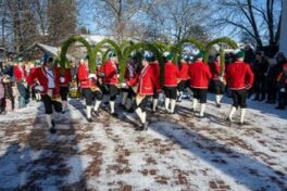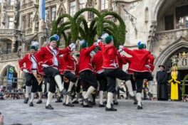 Die Tanzgruppe der Schäffler Münchens freut sich über den Besuch und dass sie der Bevölkerung mit den Auftritten eine Freude bereiten.