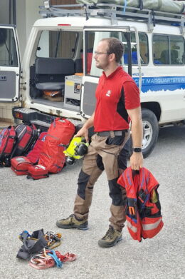Tegethoff weiter: “Unsere Bereitschaft besteht aus einem Team von 33 Aktiven, davon 3 Frauen, sowie 13 Anwärterinnen und Anwärtern, davon 2 Frauen, die sich dabei allesamt ehrenamtlich engagieren. Hinzu kommen aktuell 164 Fördermitglieder und die Unterstützung durch die Gemeinden unseres Zuständigkeitsgebiets. Dieses erstreckt sich über die Gebiete der Gemeinden von Marquartstein, von Staudach-Ergendach sowie von Unterwössen mit Oberwössen.”. Christian Tegethoff: “Die Leitung der Bereitschaft übe ich gemeinsam mit zwei Stellvertretern aus. Erster Stellvertretender Bereitschaftsleiter ist Raphael Stöttner und Zweiter Stellvertretender Bereitschaftsleiter ist Markus Pertl. Markus, Raphael und ich haben zwischen uns gewisse Themengebiete aufgeteilt, wodurch jeder einen bestimmten Führungs- bzw. Verantwortungsbereich entsprechend betreut.”.