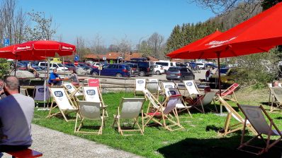 Fotos: Jörg Schäfer – aktuelle Eindrücke an der Talstation mit Bikern und mit den Angeboten von Sonnenliegen beim Relaxplatz neben dem Kiosk.
