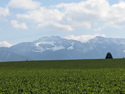 In Tiefenthal verlassen wir die Teerstraße und radeln auf holpriger Sandstraße hinunter zur Brücke über die Thalkirchner Achen, die wir überqueren und dann steil hinauf nach Stetten strampeln. Über Atzing und Bachham kommen wir nach Siggenham, radeln hinunter zur Grablmühle und durchs Eichental zurück nach Prien.