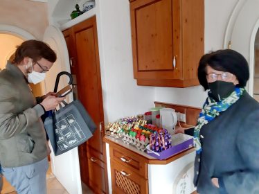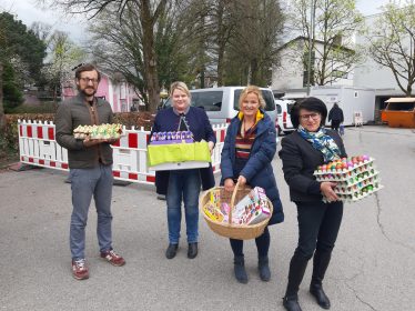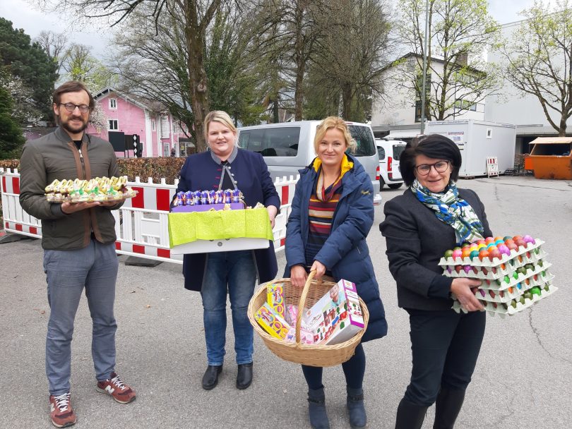 So besprach man sich mit den Flüchtlingshelfern Pfarrer Mirko Hoppe, Rosi Hell und Sarah Stepat sowie dem Hallenwärter Andi – und brachte den Flüchtlingen zu Ostern mit kleinen Ostergaben eine kleine Überraschung. Die Flüchtlinge freuten sich über die von der Gerwerbegemeinschaft PrienPartner spendierten Schokoladen-Osterhasen, über die gefärbten Ostereier vom Wastlhof sowie über 10 Euro, die für jeden Flüchtling ein anonymer Spender zur Verfügung stellte.
