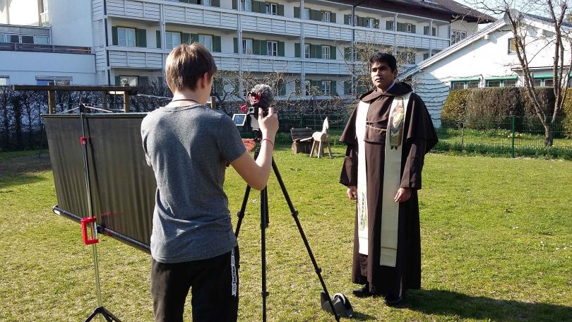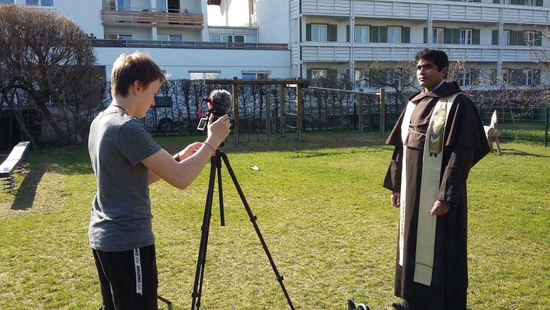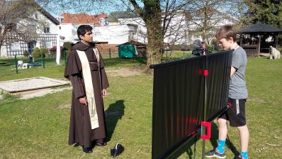 An die Seelsorger und Seelsorgerinnen des Pfarrverbandes Westliches Chiemseeufer wurde der Wunsch herangetragen, sie sehen und hören zu können. Deshalb sind jetzt auf der Homepage des Pfarrverbandes Westliches Chiemseeufer www.pwcu.de zu jedem Feiertag der Heiligen Woche und dann an den Sonntagen Videoimpulse zu finden. Im Bild sehen wir den Jungfilmer Samuel Hofmann bei den Aufnahmen zum Videoimpuls von Pater Joshy zum Gründonnerstag. Am Palmsonntag sprach schon Gemeindereferent Werner Hofmann, Gemeindereferentin Conny Gaiser zum Karfreitag und Pater Benny zum Ostersonntag. Am Ostermontag schließt dann Pfarrer Klaus Hofstetter die Osterfeiertage mit einem Impuls ab.