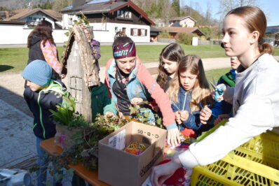 Die Jugendgruppe des Gartenbauvereins von Marquartstein traf sich zum Osterbasteln. Unter der Leitung von Martina Noichl und Ute Fembacher wurden Naturhäuschen gebastelt, die von den jungen Gartlern bepflanzt wurden. Am meisten Spaß hat ihnen das Dekorieren mit Holzblumen, Wolle und viel Glitzer gemacht.