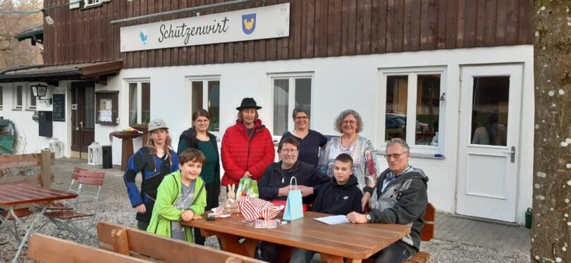 Foto & Text: Stefan Anzer – Foto zeigt die Teilnehmer mit ihren Preisen im malerischen Biergarten vor der Fassade des Schützenwirts im Eichengrund.