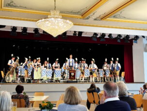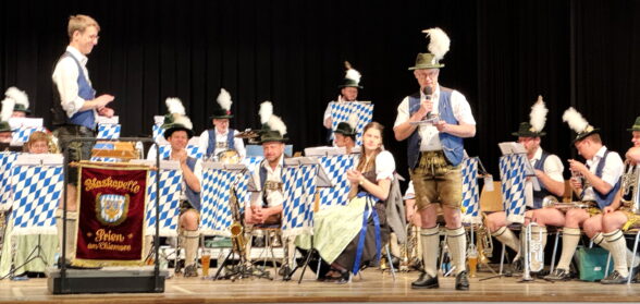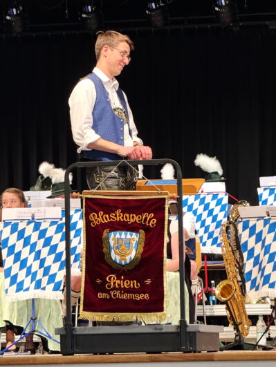 Dessen Vater Franz Beyer ist der Komponist eines Gratulationsmarsches, den die Priener Blaskapelle erstmals spielte. Da war es nur zu selbstverständlich, dass die Blasmusikanten Daniel Beyer zum Dirigieren des Marsches als Priener Uraufführung auf die Bühne baten. Eine zweite Besonderheit war der portugiesische Marsch „O Vitnho“, dessen ruhigen Melodien und dessen häufige Wechsel zwischen Dur und Moll für ein spannendes Hör-Erlebnis sorgen. Ganz aktuell wurde dem an diesem Ostermontagmorgen verstorbenen Papst Franziskus die Polka „Ehrenwert“ gewidmet. Zwischen den blasmusikalischen Darbietungen sorgte Martin Obermüller für auflockernde Informationen ehe es noch zu drei erklatschten Zugaben kam. Der nächste Auftritt der Priener Blaskapelle ist das Maibaumaufstellen in Prien am Donnerstag, 1. Mai.