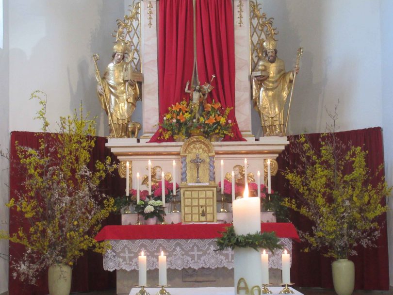 Einen festlichen Gottesdienst feierten die Wortgottesdienstleiterinnen Monika Freund und Sieglinde Fuihl am Ostersonntag in der Pfarrkirche “Christkönig”, unterstützt wurden sie dabei musikalisch mit einem Teil des Wildenwarter Kirchenchores unter der Leitung von Liesi Huber und von Organist Helmut Rosenwink. Nach der Segnung der mitgebrachten Speisen erhielten alle Gottesdienstteilnehmer noch ein Osterei sowie die CD “Auferstehung mitten im Leben – ein ökumenisches Mutmachprojekt” des Pfarrverbandes Westliches Chiemseeufer. Viel Lob gab es an das Mesner- und Helfer-Team, das wieder für einen besonders schönen Osterschmuck in der Kirche sorgte.