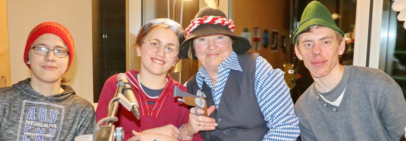 Bericht und Fotos: Heinrich Rehberg – Friedlich vereint: Räuber Hotzenplotz (Doris Gschlößl) mit Kasperl (Philipp Manuel Riedel), Großmutter (Julia Prokopski) und Seppel (Sebastian Meierdiercks) nach der sechsten Otfried Preußler Gedächtnislesung in der Heilpädagogischen Tagesstätte Aschau.