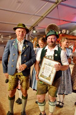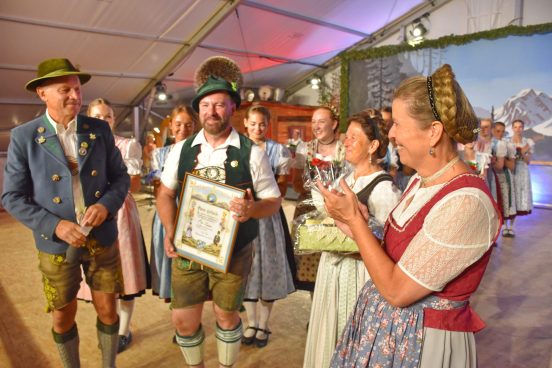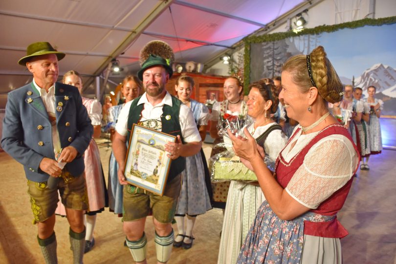 Die höchste Auszeichnung des Chiemgau Alpenverbandes ist die Ehrenurkunde für besondere Verdienste in der Trachtenpflege und Erhaltung der Heimat, das Gauverdienstzeichen in Gold. Das wurde Otto Zaiser von Miche Huber beim Chiemgauer Tanzfest verliehen. Der Gauvorsitzende fand das ist eine „grechte Gelegenheit“ und zählte die Verdienste von Otto Zaiser auf, wie Almwirt, Messner und die „Liab zur Trachtensach, zur Hoamat und as grechte Gspühr“ , Huber bezeichnete ihn als Vollblut Schlechinger beim Trachtenverein d’Gamsgebirgler . Dort war er von 1995 bis 2010 erster Vorplattler, von 2003 bis jetzt Tanzwart CAV und ebenfalls bis heute seit zwölf Jahren erster Jugendleiter und seit zehn Jahren auch zweiter Vorsitzender im Trachtenverein. Außerdem sagte Miche Huber, dass Otto Zaiser ebenso „beliebt sei bei de junga Tanzleit“, zur Bekräftigung der Aussagen kam lang anhaltender kräftiger Beifall aus dem Publikum. Miche Huber bewunderte noch, wie man das alles –neben dem Beruf- unter einen Hut bringen kann.     wun