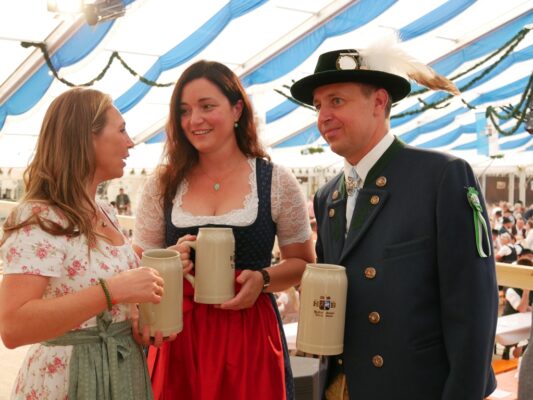 Gefeiert wurde der Auftakt – der Tag der Vereine und Betriebe –  zu den Klängen der Festmusik, der Stadtmusik-Kapelle Traunstein gefolgt von der Gruppe „Buamteifl“ mit den drei Traunsteiner Vereinen, die die Festgemeinschaft bilden, der Traunsteiner Bevölkerung und zahlreichen Gästen darunter viele Trachtlerinnen und Trachtlern aus nah und fern. Im Festzelt am Festplatz an der Siegsdorfer Straße gelegen wird es schon am heutigen Samstag weitergehen. Ab 20:00 wird der traditionelle Gauheimatabend, bei dem verschiedene Trachtenvereine und Gruppen Bayerns größtem Gautrachtenverbandes auftreten gefeiert. Moderiert wird der Abend von Andreas „Anderl“ Estner. Der studierte Musiker und Journalist hat sich als Musiker und während seiner fast 25-jährigen Laufbahn beim Bayerischen Rundfunk einen Namen gemacht.
