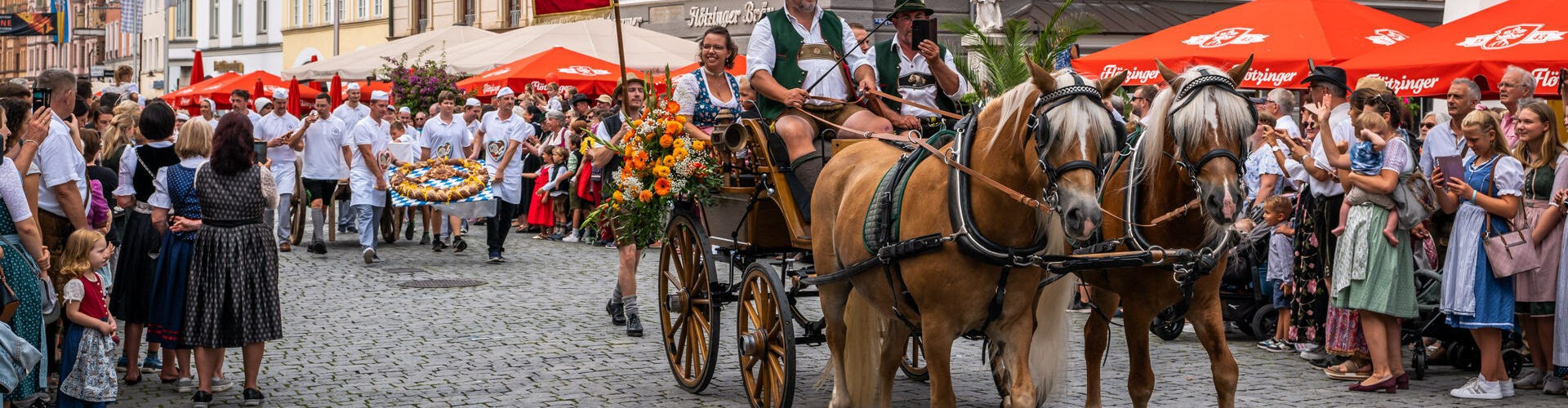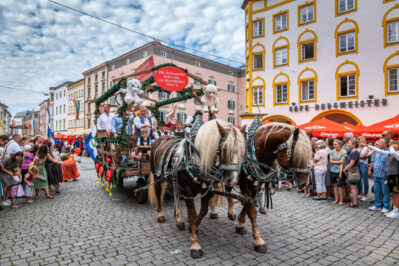 Bevor jedoch das erste Bier angezapft wurde, gab es den traditionellen Festzug der Brauereien, Wirte, Bedienungen und Schausteller durch die Innenstadt. Dabei ging es über den Max-Josefs-Platz, Ludwigsplatz und Kaiserstraße zur Loretowiese. Dort folgten die Festreden vor dem Glückshafen.