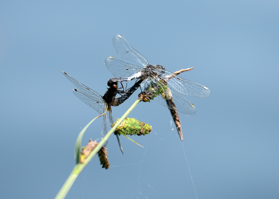 Zwei Fotos von paarende Zierliche Moosjungfern im Rimstinger Chiemseeuferbereich.