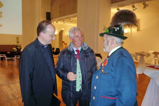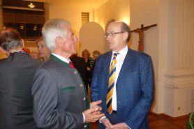 Nach dem offiziellen Teil der Feierstunde konnte Dr. Helmut Wittmann Kardinal Marx beim persönlichen Gespräch ein Foto zeigen, das ihn mit dem früheren Papst Johannes Paul II. zeigt, dazu sagte der Kardinal: „Das ist auch für mich der einzige Heilige, mit dem ich schon persönlich gesprochen habe“.