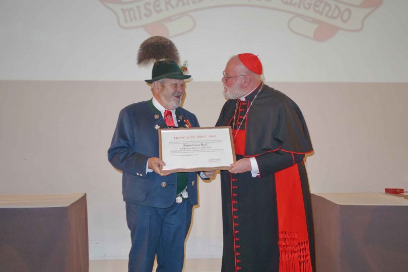 Aus den Händen von Reinhard Kardinal Marx erhielt Max Bertl, Landesvorsitzender des Bayerischen Trachtenverbandes den päpstlichen Gregorius-Orden in der Ordensklasse der „Ritter“ bei einer Feierstunde im Saal der ehemaligen Karmelitenkirche von München. Wie der Erzbischof von München und Freising bei seiner persönlichen Würdigung sagte, soll damit das umfassende und vorbildhafte Wirken von Max Bertl zum Ausdruck kommen.