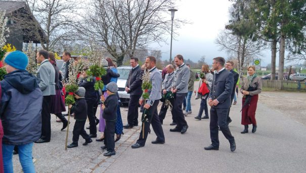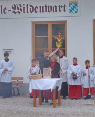 Vor einem Wort-Gottesdienst wurden auf dem Platz zwischen Schule-Musikantenhaus-Pfarrheim-Kirche in Wildenwart in feierlicher Weise die von den Familien und Gläubigen mitgebrachten Palmbuschen und Palmzweige gesegnet. Hernach wurde in die Kirche eingezogen und danach trafen sich die Wildenwarter in großer Zahl im Pfarrheim zum traditionellen Fastensuppenessen – siehe eigener Bericht.