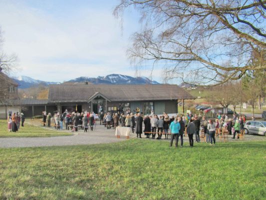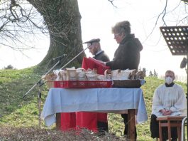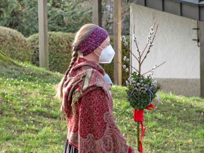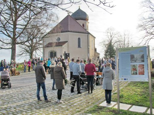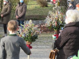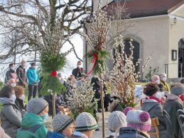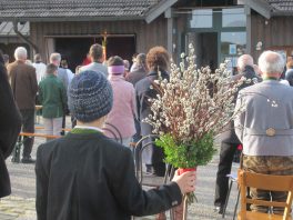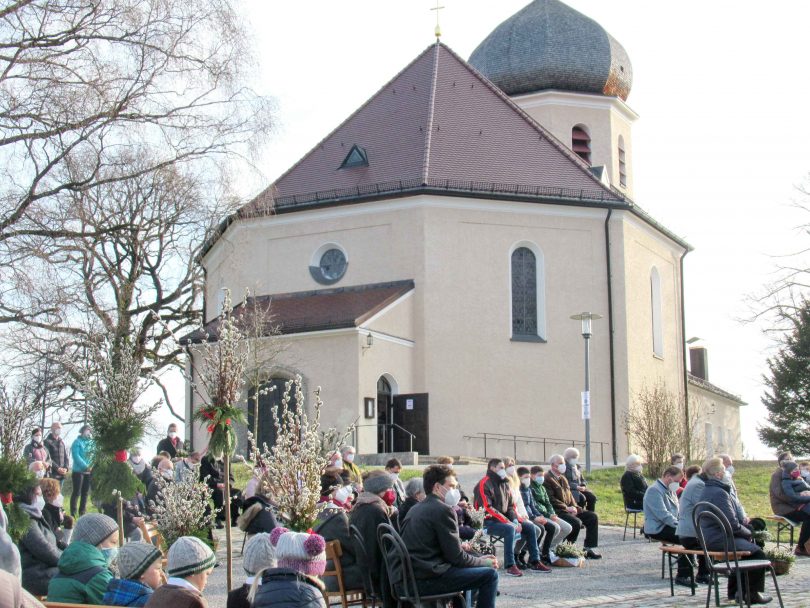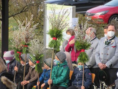 „Palmzweige sind ein Zeichen des Lebens“ – mit diesen Worten begann Prälat Dr. Lothar Waldmüller die Segnung der zahlreich mitgebrachten Palmbuschen der Gläubigen in der Pfarrei „Christkönig“ von Wildenwart. Die Feier zum Palmsonntag mit Beginn der Karwoche fand unter freiem Himmel zwischen Pfarrheim und Christkönigskirche statt. In seinen weiteren Ausführungen bat der Geistliche, in der Fastenzeit nicht in erster Linie Verrenkungen beim Fasten zu machen, sondern vielmehr Jesus Christus in den Mittelpunkt des Bewusstseins zu rücken“. Die Kollekte galt an diesem Tag der bedrängten Christenheit im Heiligen Land, der Erlös eines anschließenden Verkaufs von Palm-Brezen kommt der Obdachlosenhilfe von St. Bonifaz in München zugute. Die musikalische Gestaltung übernahm ein Bläser-Quartett aus den Reihen der Blaskapelle Wildenwart.