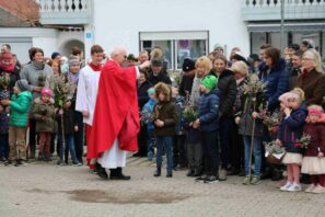 Nach altem Brauch besteht bei den Buben immer noch der Wettstreit, wer den schönsten, längsten und größten Palmbuschen in die Kirche tragen kann. Pfarrer Hermann Overmeyer weihte die mitgebrachten reich geschmückten Palmbuschen und wünschte den Segen des Himmels herab. Als Segensbringer für das ganze Jahr brachten die Kinder nach dem Gottesdienst in der Pfarrkirche Sankt Margaretha die geweihten Zweige für den Herrgottswinkel in alle Häuser der Gemeinde.