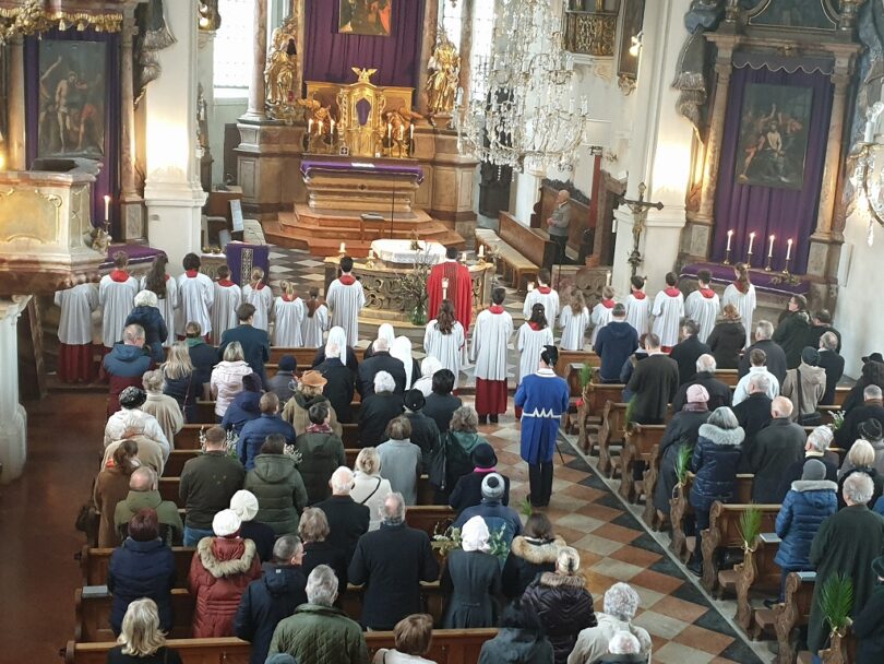 Dort wurde ein festlicher Gottesdienst gefeiert, der von der Chorgemeinschaft „Mariä Himmelfahrt“ musikalisch gestaltet wurde. Zum Abschluss wies Ministrantenbegleiter Markus Wörndl noch darauf hin, dass an Ostern (Osternacht und Hochamt) wieder für eine Ministranten-Wallfahrt nach Rom gesammelt wird und dass die Kirchgänger deshalb nicht nur den „Klingelbeutel-Euro“ mitnehmen sollten. Zeitgleich zum Gottesdienst in der Pfarrkirche versammelten sich die Gläubigen mit vielen Kindern und Jugendlichen zu einem Familiengottesdienst im Pfarrheim.