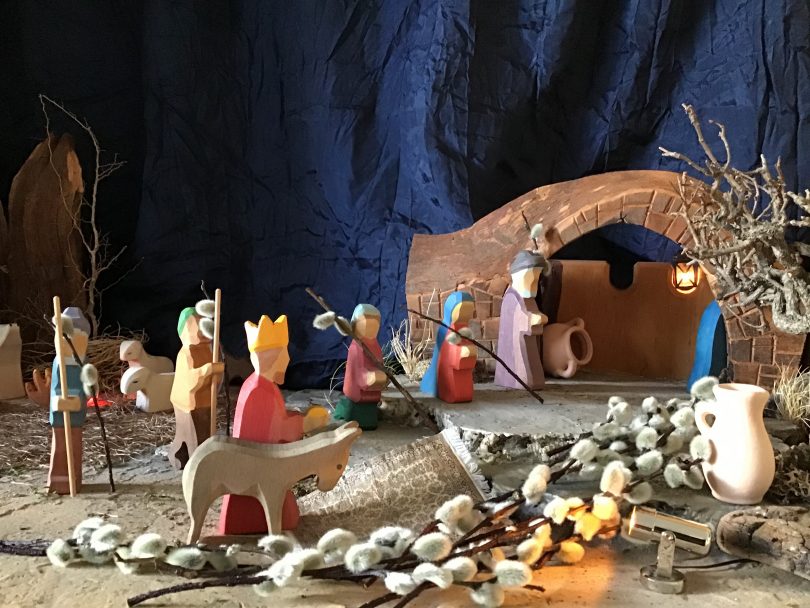 Aussergewöhnliche Umstände erzeugen ungewohnte Kreativitäten – so hat Priens Pfarrer Klaus Hofstetter seine Weihnachtskrippe nicht nur zu einer Ganz-Jahres-Krippe, sondern auch zu einer Osterkrippe umgebaut. Den Auftakt der wechselnden Zusammenstellungen ist die Palmsonntags-Szene, die rechtzeitig zum Palmsonntag fertig geworden ist – dabei wurde einer der drei Heiligen Könige von der Jesu-Geburt-Szene zum Jesus gemacht. Weitere Szenen werden zum Gründonnerstag, Karfreitag, Karsamstag und Ostersonntag folgen. „Damit will ich zur eigenen und häuslichen Glaubenspflege und zum Nachdenken und Nachmachen anregen“, so Pfarrer Klaus Hofstetter von den Pfarrverbänden Bad Endorf und Westliches Chiemseeufer.