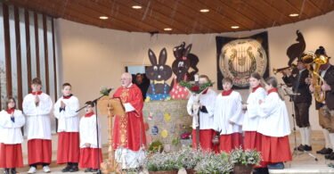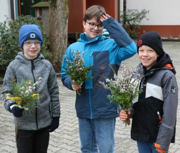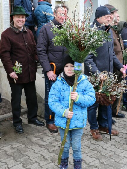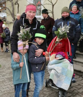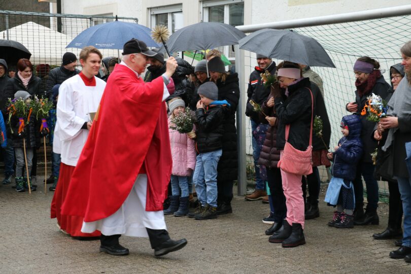 Pfarrer Hermann Overmeyer weihte die mitgebrachten reich geschmückten Palmbuschen und wünschte den Segen des Himmels herab. Als Segensbringer für das ganze Jahr brachten die Kinder nach dem Gottesdienst in der Pfarrkirche Sankt Margaretha die geweihten Zweige für den Herrgottswinkel in alle Häuser der Gemeinde.