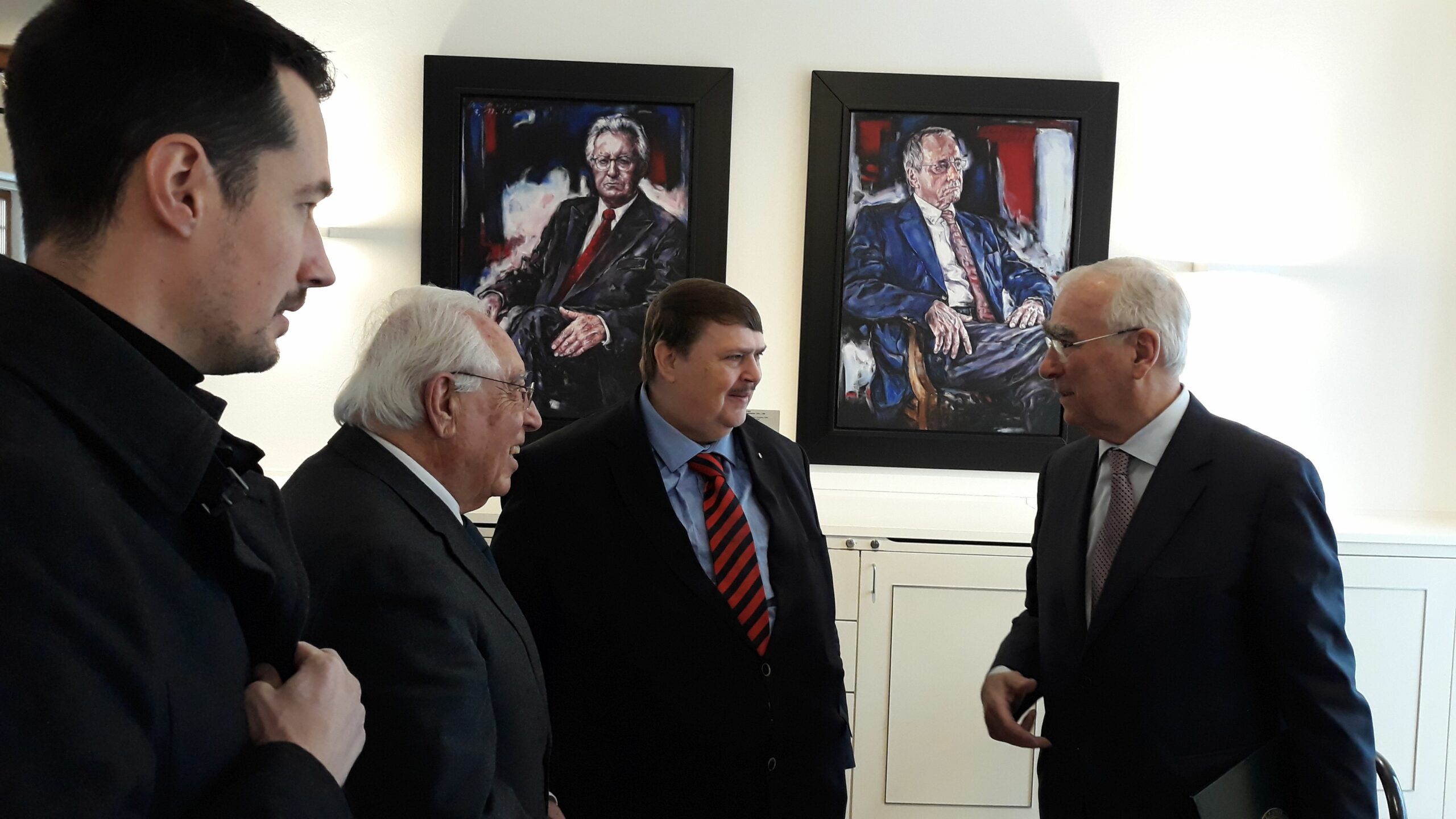 Zusammentreffen im Kemptener Rathaus: v.r.n.l. Bundesminister a.D. Theo Waigel, Bernd Posselt, Alain Terrenoire und Christian Hoferer.