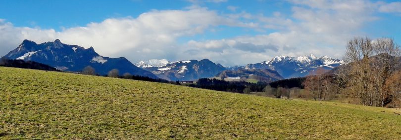 Prächtige Panorama-Bilder lassen sich auf dem Hochplateau Samerberg festhalten – zumal wie in diesen Tagen das sonnige Wetter für klare Blicke sorgt. Wie auf diesem Bild, das heute morgen bei der Fahrt nach Törwang mit Blickrichtung Wendelstein entstand.