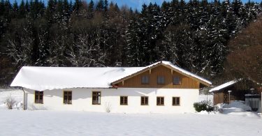 Aus vier Einzelaufnahmen ist dieses Panoramabild mit Blick auf Törwang am Samerberg entstanden. Tiefster Winter und eisige Kälte bei spürbarem Wind – da heißt es, sich warm anzuziehen, um die Schönheit der Samerberger Natur zu genießen.