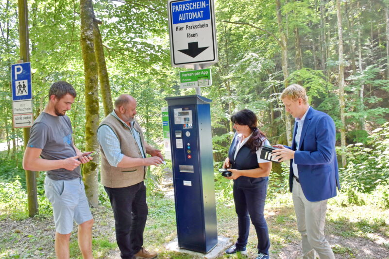 Ab sofort können Autofahrer ihre Parkscheine in Schleching auf sechs gebührenpflichtigen kommunalen Wanderparkplätzen auch mit dem Smartphone lösen, minutengenau, ohne Bargeld und kontaktlos. Der Preis ist der Gleiche wie mit Bargeld am Automaten.