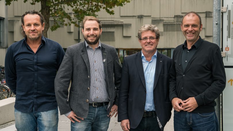 Foto: Starbulls Rosenheim: v.l.n.r.: Herbert Obermaier (Sportbeauftragter Hochschule Rosenheim), Marcus Thaller (Starbulls Rosenheim), Prof. Dr. h.c. Heinrich Köster (Präsident Hochschule Rosenheim), Oliver Heller (Kanzler Hochschule Rosenheim)