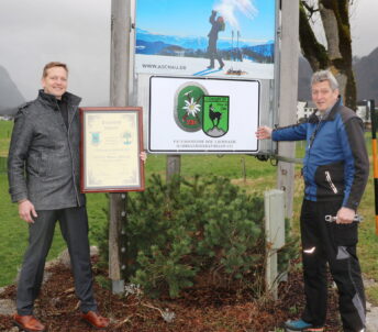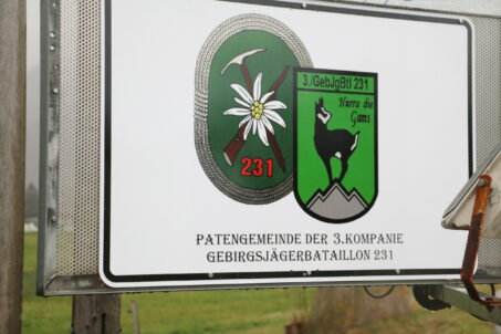 Die Gemeinde Aschau zeigt bereits an den Ortseingängen ihre Verbundenheit mit der dritten Kompanie des Gebirgsjägerbataillons 231 in Bad Reichenhall seit einem Vierteljahrhundert. Die schwarze Gams auf dem Dreifachberg weist zusammen mit dem Schlachtruf der dritten Kompanie „Hurra die Gams“ auf die Patenschaft der Gemeinde Aschau mit den Reichenhaller Jagern hin. Die Gams stammt aus dem Kitzbühler Wappen und erinnert an das Erkennungszeichen der ehemaligen fünften Gebirgsdivision, die ihre Standorte zwischen Brannenburg und Reichenhall hatte. Bürgermeister Simon Frank und Bauhofleiter Rudi Angermaier legten letzte Hand an das neue Schild am ostwärtigen Ortseingang an und befestigten die allerletzten Schrauben.