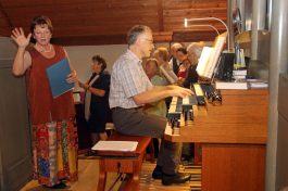 Stefan Leitenbacher nutzte die Gelegenheit und bedankte sich im Namen der Pfarrgemeinde bei Chorleiterin Christl Diwischek und Organist Klaus Breuer für deren 20jähriges Dienstjubiläum und überreichte jedem ein kleines Geschenk.