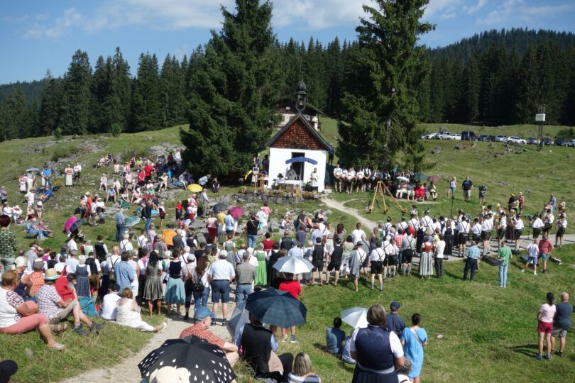 Feierlich begangen wurde am Tag Mariä Himmelfahrt das Patrozinium an der gleichnamigen Kapelle auf der Winklmoos-Alm. Monsignore Christoph Huber zelebrierte den Festgottesdienst und stellte Maria als großes Vorbild hin. Sie habe in ihrem Leben alle Mühsal auf sich genommen und den Willen Gottes erfüllt. „Stellt euch ebenfalls der euch übertragenen Verantwortung und wisst dabei Gott auf euerer Seite“, rief er den Gläubigen zu. Er segnete die bereitliegenden Kräuterbuschen und bezeichnete diese als Sinnbild der Gesundheit für Leib und Seele. In würdiger Weise umrahmt wurde der Gottesdienst von den Klängen der Musikkapelle Reit im Winkl und der Reit im Winkler Alphornbläser. Das Almfest der Winklmooser Almbauern fand seine Fortsetzung vor den Berggaststätten mit der Musikkapelle und weiteren Musikgruppen.