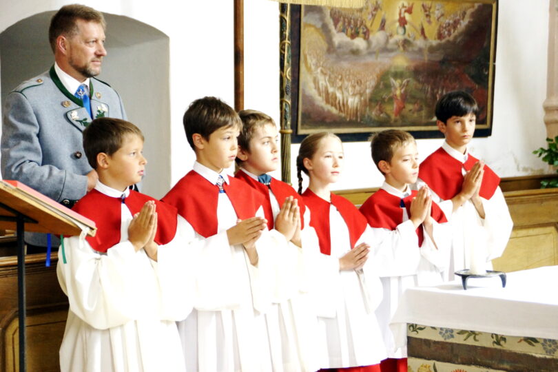 Kurat Tobias Pastötter zelebrierte die heilige Messe, die musikalisch vom Kirchenchor umrahmt wurde. Ganz stolz präsentierte er der voll besetzten Kirche heuer außerdem sechs neue Ministranten. Wasti Fink, Anton Schrödl, Quirin Kaiser, Leni Weyerer, Markus Riepertinger und Johann Link bereichern nun die 16-köpfige Ministranten Schar in Rossholzen. Im Anschluss an den feierlichen Gottesdienst lud traditionell die Freiwillige Feuerwehr Rossholzen zum geselligen Beisammensein ein. Dank dem herrlich sonnigen Spätsommer Wetter konnte zur Bewirtung wieder der neue Küchenstadl am Dorfplatz genutzt werden. Musikalisch umrahmt wurde der Patroziniumstag von der Musikkapelle Samerberg. Auch die Kindergruppe des GTEV Almenrausch Rossholzen brachte ihre Freude mit einigen Tänzen und Plattlern zum Ausdruck. Ein rundum gelungenes Fest, das die Generationen und Vereine in Rossholzen gleichermaßen vereinte.
