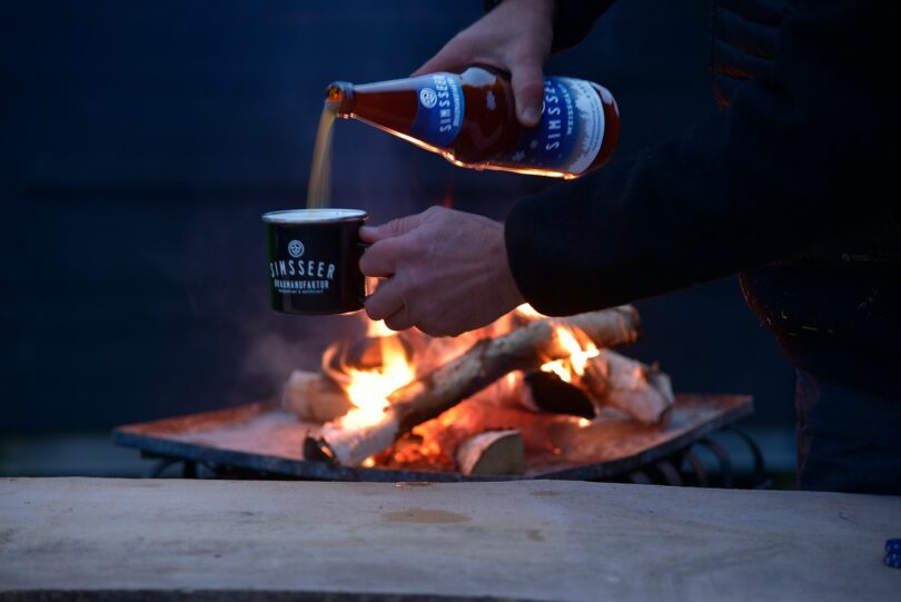 Neben der Verkostung der „Weißglut“, einer Mischung aus der Simsseer Strandweißen und fruchtigem Apfelwein von ORO, wird auch das Simsseer Bier angeboten. Am offenen Feuer können Besucher Gegrilltes und weitere Speisen genießen.