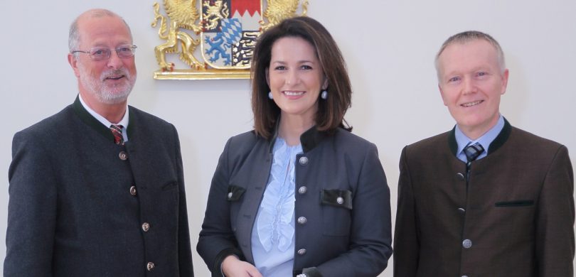 Foto: Pirchmoser/StMELF – Bildunterschrift: Die Ministerin mit Hermann Hübner (l.) und Friedrich Nebl.