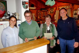 Im Rahmen der Jahresversammlung wurden auch Ehrungen für besonders lange Mitgliedschaften vorgenommen. Eine Ehrennadel und Urkunde bekamen Christine Huber und Florian Rauch (nicht anwesend sein konnte Georg Hinterholzer) für 25 Jahre Mitgliedschaft. Blumen gab es für Marga Schaub für die stete und zuverlässige Sauberhaltung der Vereinshütte.