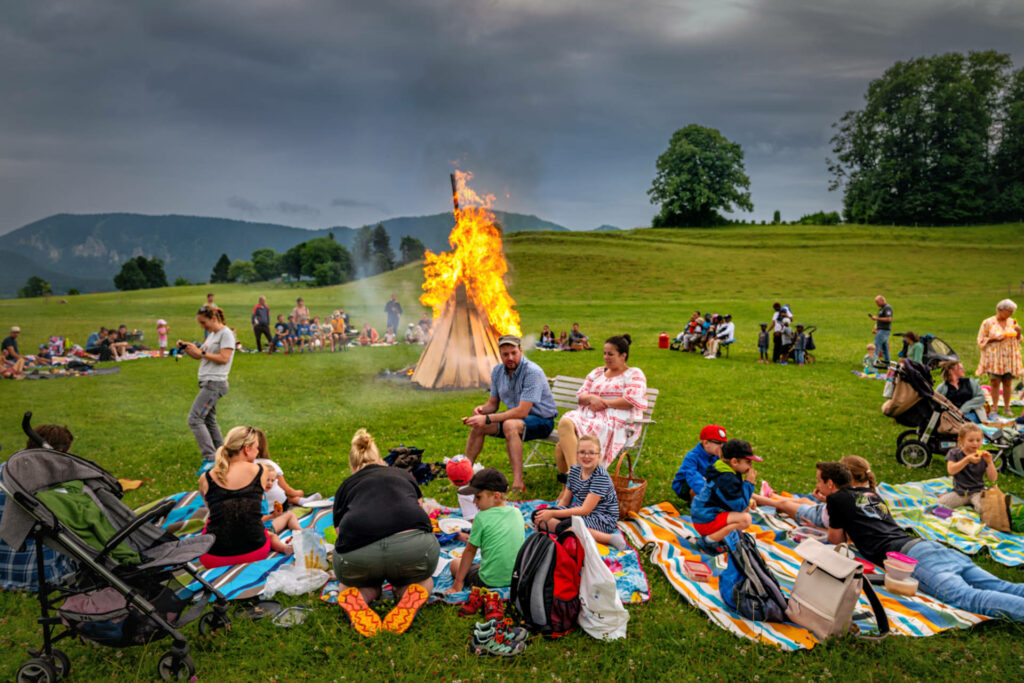 Viele Familien hatten bunte Decken mitgebracht, Picknickkörbe und Lieblingsspeisen. Es gab Butterbrezen, Obst, Kekse – und ganz viel zu erzählen und lachen. Wir Kinder spielten auf der Wiese, beobachteten immer wieder das Feuer, das knisterte und krachte. Es war warm, schön – und ein bisschen magisch. Fast wie im Märchen.
