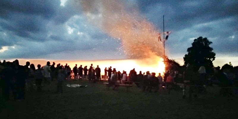 Bei einer angenehmen Sommerstimmung erfreuten sich rund 600 Leute am Stoa in Neukirchen am Simssee an einem Petersfeuer von der örtlichen Jungbauernschaft.