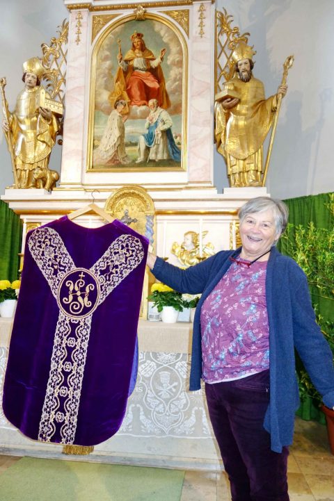 - Rita Stoib mit dem violetten Meßgewand für die Advent- und Fastenzeit
