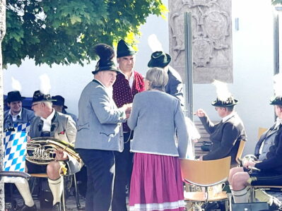 Der Pfarrgemeinderat als Veranstalter und Organisator konnte sich auch diesmal wieder starker Unterstützung sicher sein. Freiwillige am Grill, an der Schänke, in der Küche und im Service fanden sich ebenso ein wie Mitglieder des Katholischen Frauenbunds am Kaffee- und Kuchenbüffet, wie die Katholische Landjugend beim Kinderschminken, wie Elisabeth Kotter, die für den Blumenschmuck sorgte und wie die Priener Blasmusikanten, die für die musikalische Umrahmung aufspielten. Unter den vielen Gästen befanden sich die Bürgermeister Andreas Friedrich und Michael Anner, Pater Livio, Diakon Michael Leberle sowie Pfarradministrator Gottfried Grengel, der sich von Tisch zu Tisch überzeugen konnte, dass bei den Pfarrfest-Besuchern Zufriedenheit herrschte. Hierzu trugen unter anderem auch mit ihrer entgegenkommenden Unterstützung bei der Priener Getränkeschuppen, die Metzgerei Grosse, die Bäckerei Müller, die Chiemseefischerei Engelbert Stephan sowie die Ukrainischen Frauen, die mit drei ukrainischen Spezialitäten die bayerischen Genüsse ergänzten. Das gesamte Priener Pfarrbüro-Team war an diesem Tag ebenfalls ehrenamtlich im Einsatz, so dass dank vieler anpackender Hände zum Erntedank-Feierabend wieder aufgeräumt war.