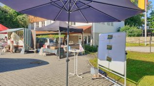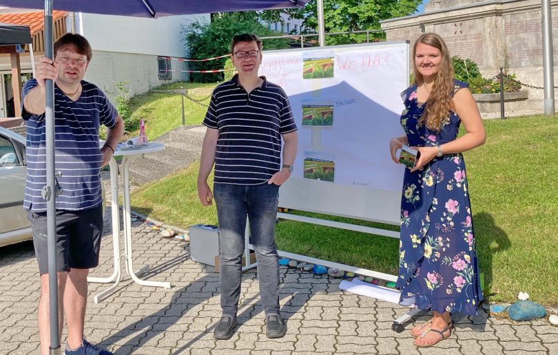 Die drei Seelsorger*innen des Pfarrverbands waren am Wochenmarkt vor dem Rathaus Riedering. Einfach um nach den Lockdownwochen wieder präsent zu sein. Sich kurz zu grüßen – in Kontakt zu sein… und Nein – Pfarrer Claus Kebinger und Gemeinereferent Tobias Gaiser waren nicht gemeinsam beim T-Shirt shoppen. Das war purer Zufall. Vielleicht hätten die beiden sich mal besser von Gemeindeassistentin Jacqueline Egold stilistisch beraten lassen sollen