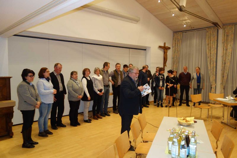 In seinem Bericht bezeichnete Nicolas Koschorz, der seit 2002 Pfarrgemeinderats-Vorsitzender ist, das Gremium als wichtigen Baustein in der Kirche vor Ort. „In den letzten vier Jahren gab es viele Umbrüche, eine neue Gottesdienst-Ordnung, personelle Veränderungen und damit auch neue Arbeitsweisen“ – so Vorsitzender Koschorz. Dies ergänzte und bestätigte auch Matthias Wicha, der seit 1. Juli 2016 Verwaltungsleiter bei den beiden Pfarrverbänden Westliches Chiemsee-Ufer und Bad Endorf ist. Wicha wies noch darauf hin, dass heuer am 18. November auch noch die Wahlen zur Kirchenverwaltung anstehen. Pfarrer Hofstetter dankte all den aktiven Kräften in der Pfarrei nach dem Motto: „Ja, ich glaube und ich gehöre gerne dazu. Mitgehen heißt Mitdenken und Mitmachen“. Die Gottesdienst-Ordnung, die vor zwei Jahren neu geschaffen wurde, hat sich nach den Worten des Pfarrers bewährt, weitere Änderungen wird es allerdings noch geben, unter anderem bei der Altenheim-Seelsorge mit Ruhestands-Pfarrer Josef Dengl, mit der Abschaffung der Herz-Jesu-Freitags-Messe in Prien, mit verstärkten Einsätzen von Ehrenamtlichen bei Kreuzwegen und Maiandachten sowie bei der sommerlichen Urlaubsvertretung. Taufen sollen zukünftig an bestimmten Terminen ein bis zweimal im Monat oder im Rahmen von Gottesdiensten möglich sein. Werner Hoffmann, der dem Seelsorgeteam in Prien am längsten angehört, bat um kritische Betrachtung der Entscheidungen und Abläufe in der Pfarrei, zugleich bat er aber auch darum, Kritik persönlich anzubringen sowie miteinander anstatt neben- oder übereinander zu reden. In der freien Aussprache unter der Leitung von Fritz Seipel wurde der Wunsch geäußert, am Aschermittwoch wieder eine Eucharistie-Feier anzubieten. Der Samstagabend-Gottesdienst – so ein weiterer Wunsch – sollte um 18 Uhr beginnen, um älteren Leuten, aber auch Jugendlichen entgegenzukommen. Abschließend wurde noch zum heurigen Pfarrausflug am Samstag, 28. April zum Kloster nach Benediktbeuren und Umgebung eingeladen. Den Abendsegen für einen guten Nachhauseweg sprach Pater Joshy.