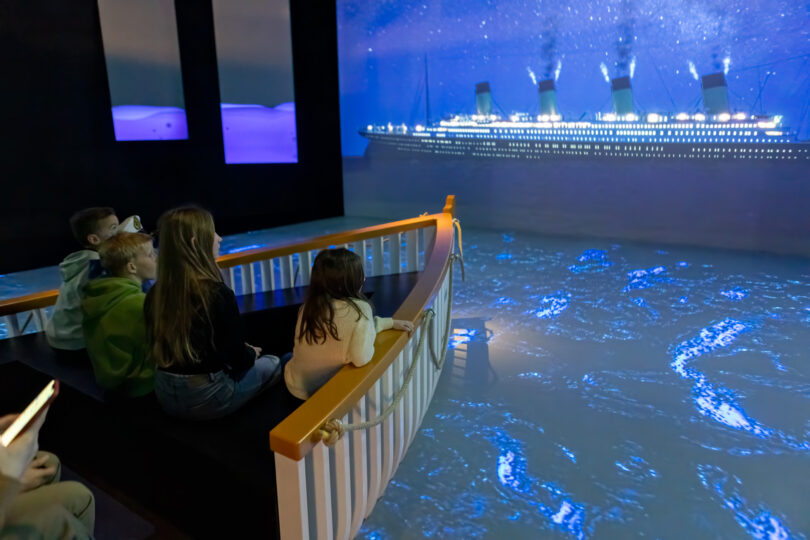 - Foto: Die immersive Projektion macht den Untergang der Titanic für Besucherinnen und Besucher eindrucksvoll erlebbar.