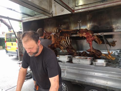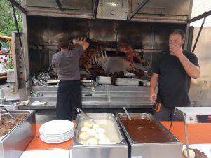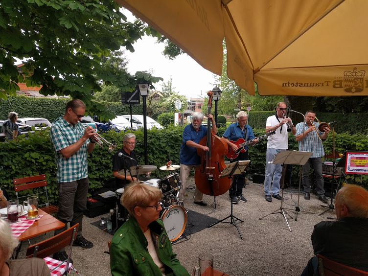 Jedes Jahr gibt es an Pfingsten im Wirtshaus d´Feldwies in Übersee einen Pfingstbraten mit musikalischer Begleitung. Heuer gab es einen Jazz-Frühschoppen mit der Band “Oiwei um hoibe Eife” und leckeren Pfingst-Ochsen vom Spieß.
