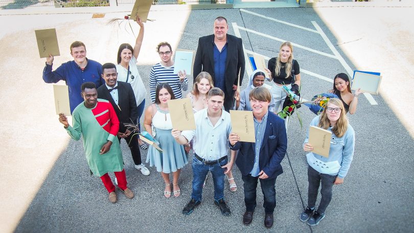 – Stolz halten die Absolventinnen und Absolventen ihre Urkunden in den Händen. Mittendrin Staatspreisträger Marco Köck (hintere Reihe, 3.v.l.) und Klassenleiter Thomas Hainzl (hintere Reihe 3.v.r.).
