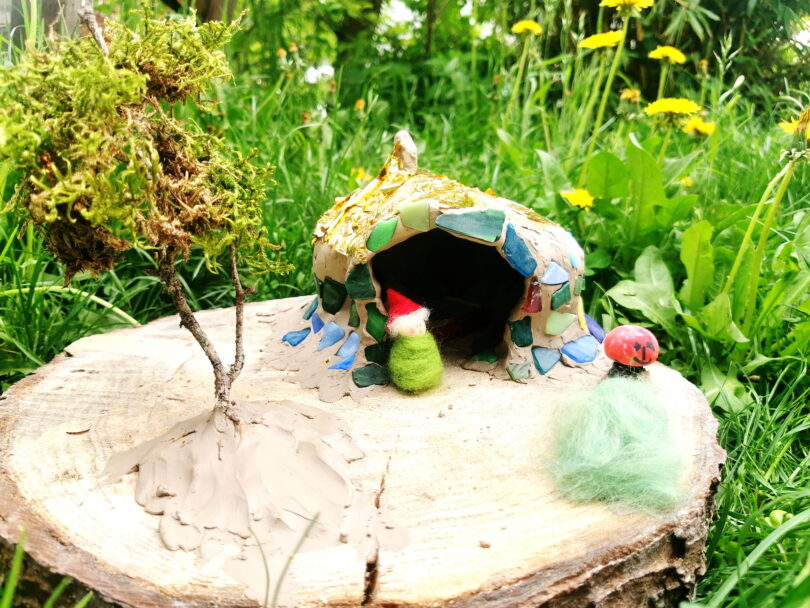 Eine Gruppe jüngerer Kinder konnte zusammen mit der Kunsttherapeutin Nadine Heigl-Sandmeyer aus Naturmaterialien ein individuelles Zuhause für einen Wichtel gestalten. Dabei reflektierten die Kinder, was ihnen in einem gemütlichen Zuhause an Wichtigsten ist und sie gingen gemeinsam in den Austausch, wie individuell doch die Bedürfnisse der einzelnen „Wichtelhausbewohner“ sind.